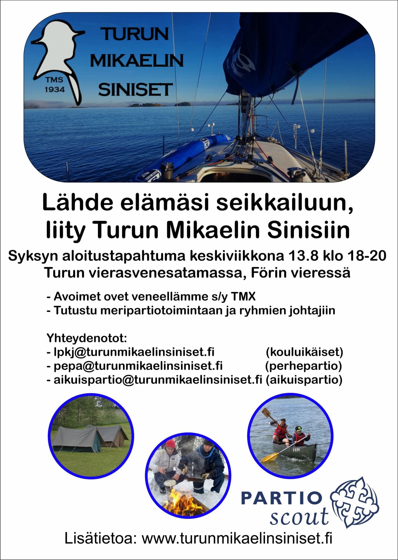 12.6.2025Turun Mikaelin Sinisten partiosyksy käynnistyy keskiviikkona 13.8 Turun vierasvenesatamassa, Förin vieressä (Läntinen Rantakatu 57). Tervetuloa niin uudet kuin vanhat jäsenet...lue lisää...Syksyn aloitustapahtuma 13.8